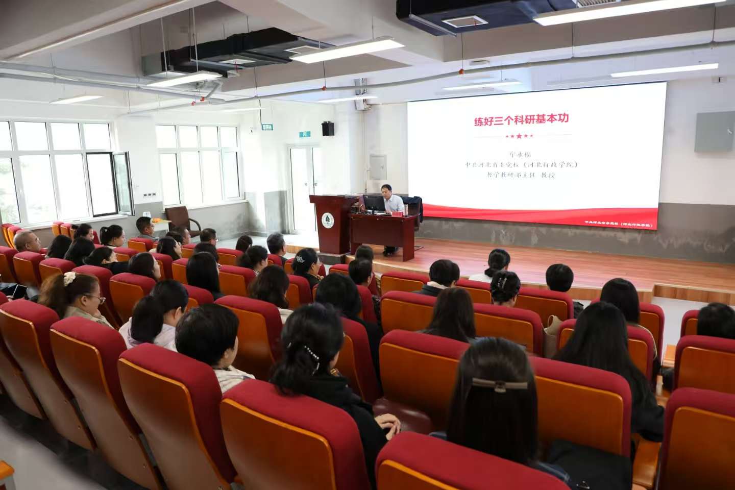 2025年10月11日,中共河北省委党校哲学教研部主任、治理现代化研究中心主任牟永福教授应邀来我校,在求实报告厅作“掌握好科研三个基本功”专题讲座。讲座由教务处副处长晁彩林主持,全体专兼课教师参加活动。