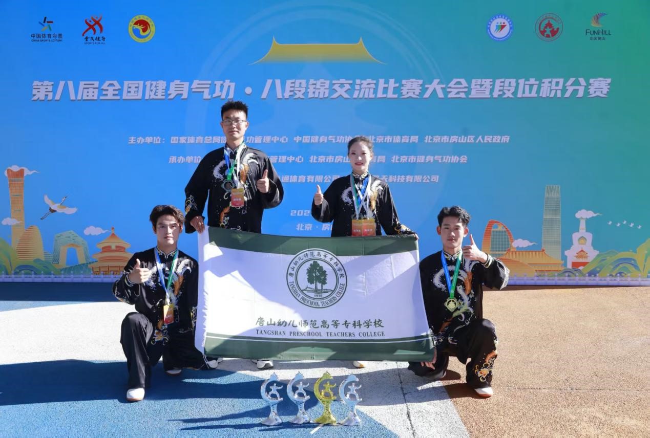 2025年10月26日,第八届全国健身气功·八段锦交流比赛大会暨段位积分赛在北京圆满落幕。由公共教学部副主任周庆波领队,公共教学部教师齐欢欢任教练,公共教学部教师宋建国与学生高天硕、倪健淞组成的我校师生联队发挥出色,最终斩获团体赛一等奖1项、二等奖3项;个人赛一等奖2项、二等奖2项。